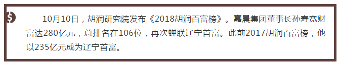 嘉晨集團(tuán)董事長(zhǎng)孫壽寬280億身家再次問(wèn)鼎遼寧首富